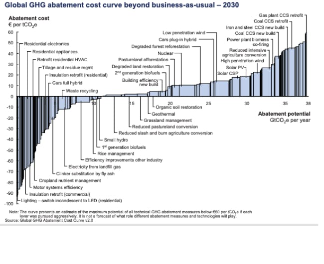 Figure 1: Example carbon cost abatement curve (McKinsey, 2009)