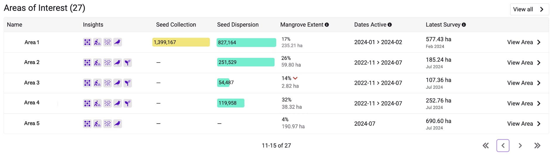 Similarly, in coastal mangroves and saltmarshes restoration, tracking sapling survival rates allows intervention teams to adjust planting density, track germination rates, and protect young trees from invasive fauna or flora and anthropogenic threats like litter.